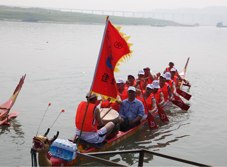 6月22日,中國(guó)·鄖縣第四屆調(diào)水源頭龍舟節(jié)在鄖陽(yáng)漢江大橋南岸橋頭隆重開(kāi)幕。我公司組建的龍舟隊(duì)在隊(duì)員們半個(gè)月的艱苦訓(xùn)練下,順利通過(guò)初賽并進(jìn)入決賽。決賽當(dāng)天我公司龍舟隊(duì)在江上擂鼓運(yùn)漿,奮力飛馳,激起白浪翻騰,聚集于江岸的萬(wàn)千觀眾激起一陣又一陣的助威加油聲浪,經(jīng)過(guò)數(shù)輪激烈角逐我公司龍舟隊(duì)在18支參賽龍舟隊(duì)中脫穎而出,最終獲“道德風(fēng)尚”榮譽(yù)稱號(hào)。