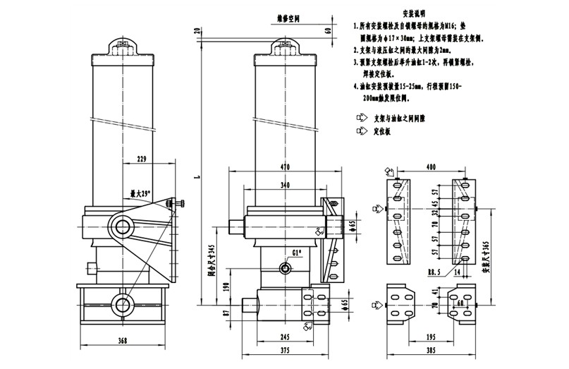 前置頂液壓油缸(帶外套筒)                                 TG175系列(礦用系列)